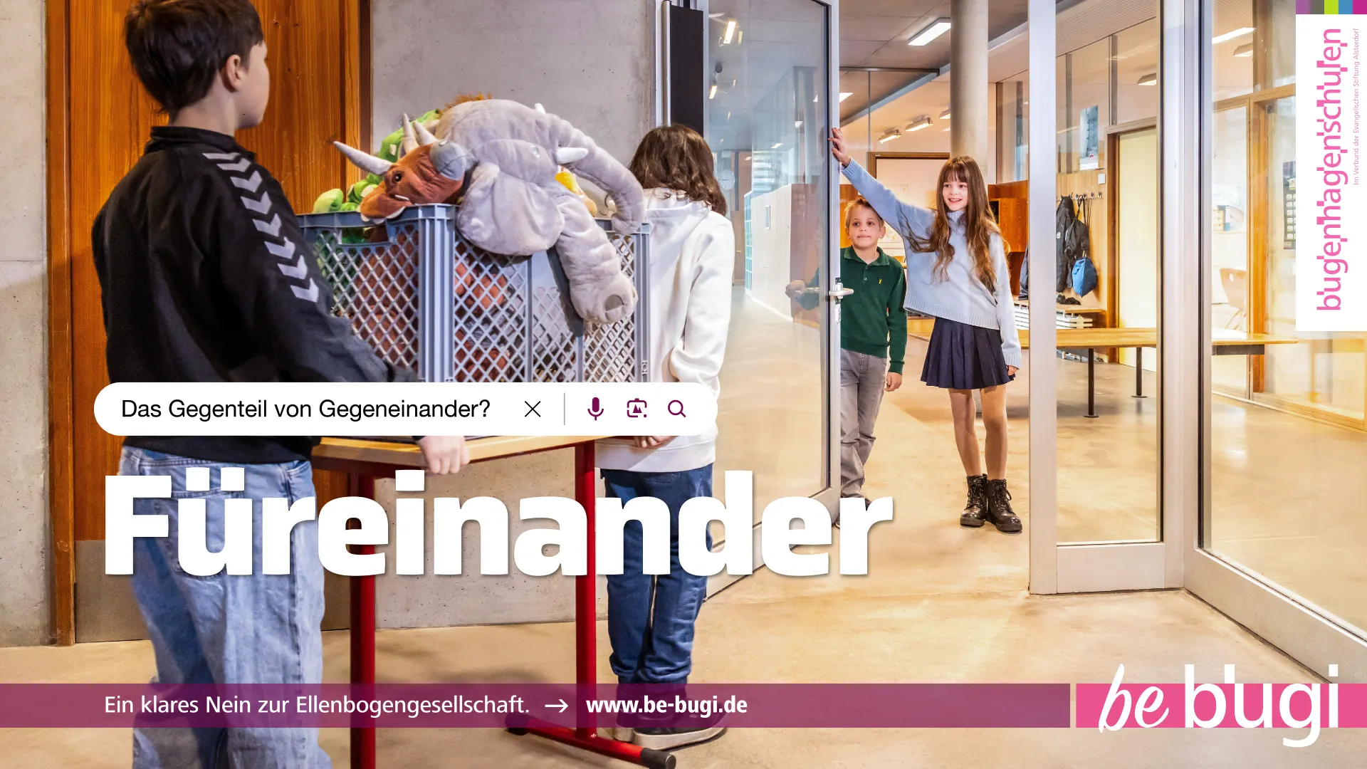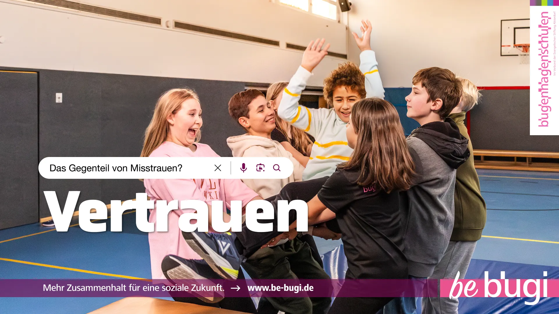 „be bugi“ steht für das Bekenntnis zu den Werten der Bugenhagenschulen und soll das familiäre Gemeinschaftsgefühl der „Bugis“ unterstreichen.