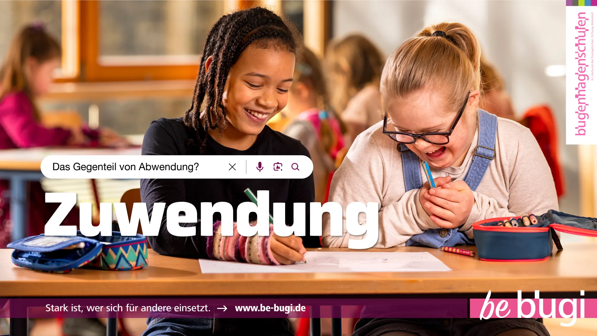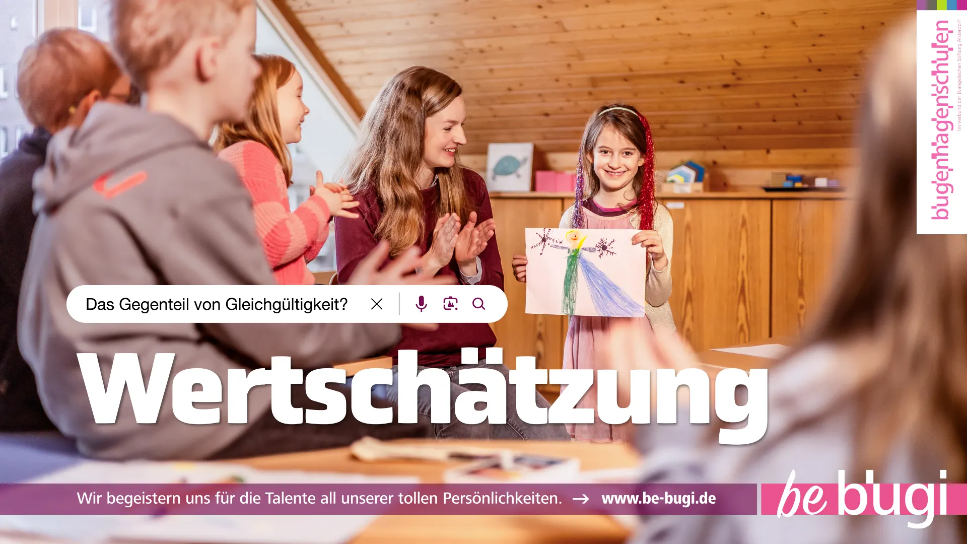 Verschiedene Kampagnenmotive stellten die tollen Werte der Bugenhagenschulen plakativ in den Fokus und betonten in einer leicht verständlichen Werteorientierung „wofür die Bugenhagenschulen stehen”.
