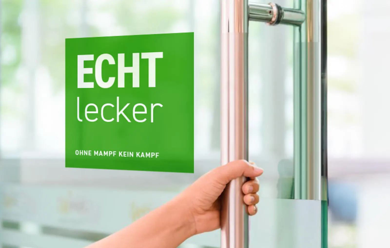 Das ECHT-Konzept lässt sich spielerisch auf sämtliche Kommunikationsmaßnahmen (vom Kantinenkleber über den Messeauftritt bis zum Firmenfahrzeug) übertragen.